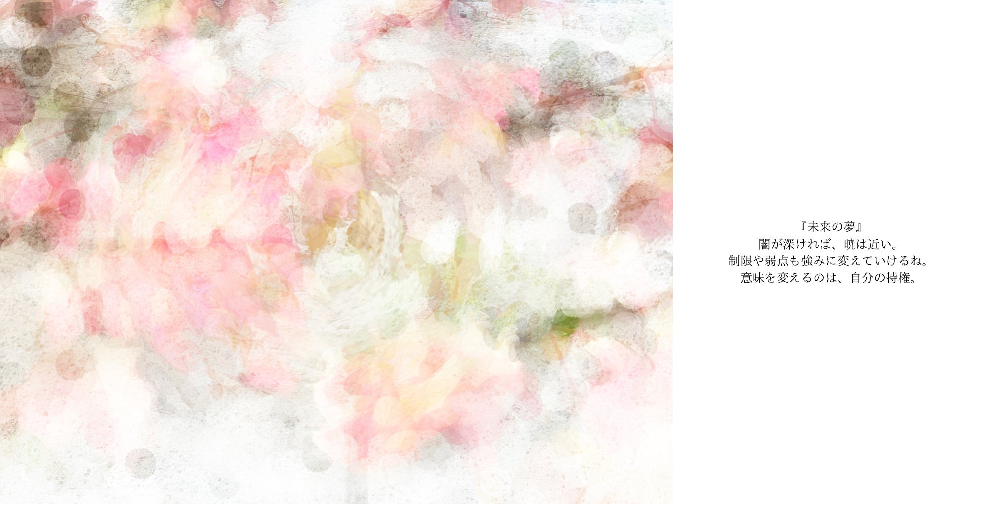 ダークな色彩からブライトに輝く色彩まで。感情彩る美しい作品たち+心洗われるメッセージたち。