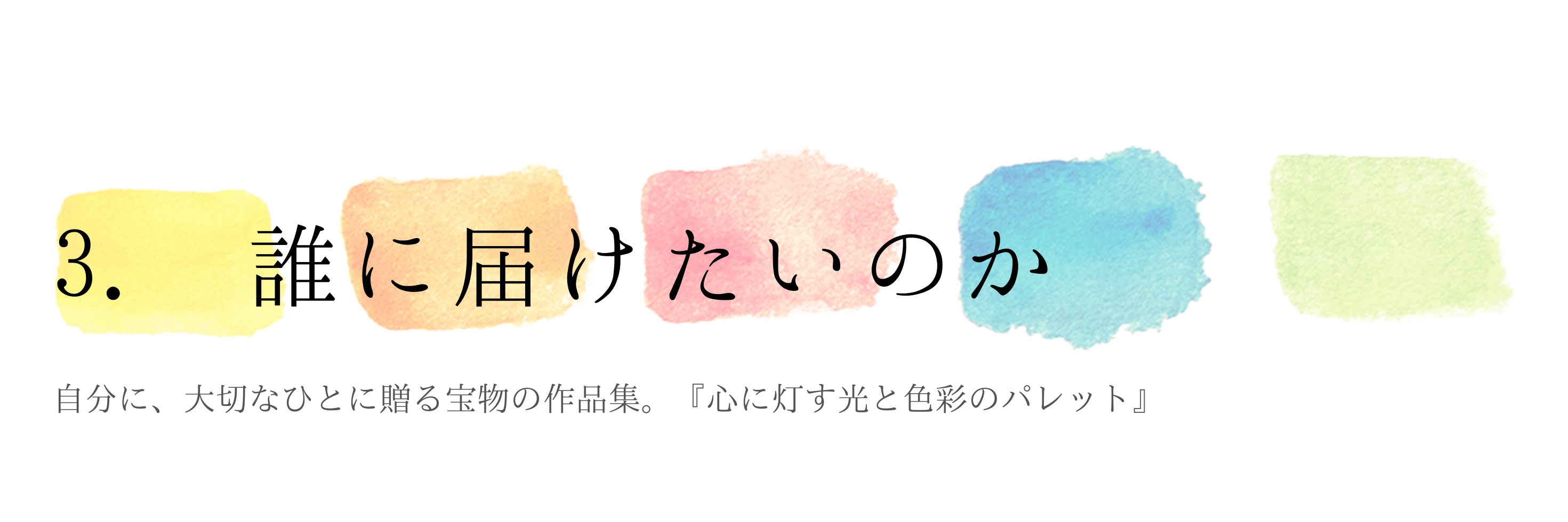 もしよろしければ本ページを5分だけご覧いただき、『心に灯す光と色彩のパレット』の出版にご共感頂けましたら、ご支援をお願いしたいです。
