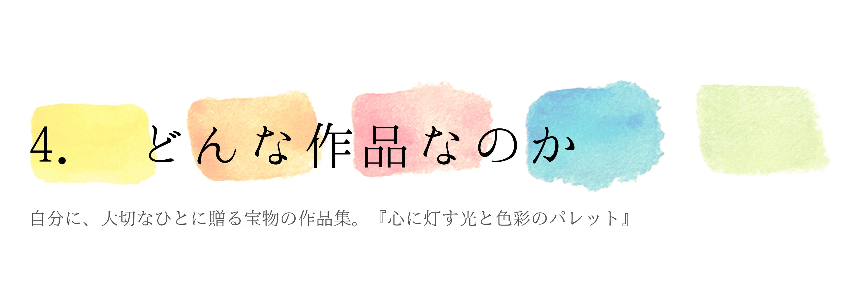 自分に、大切なひとに贈る宝物の作品集。『心に灯す光と色彩のパレット』のお届けをお楽しみにお待ちください!