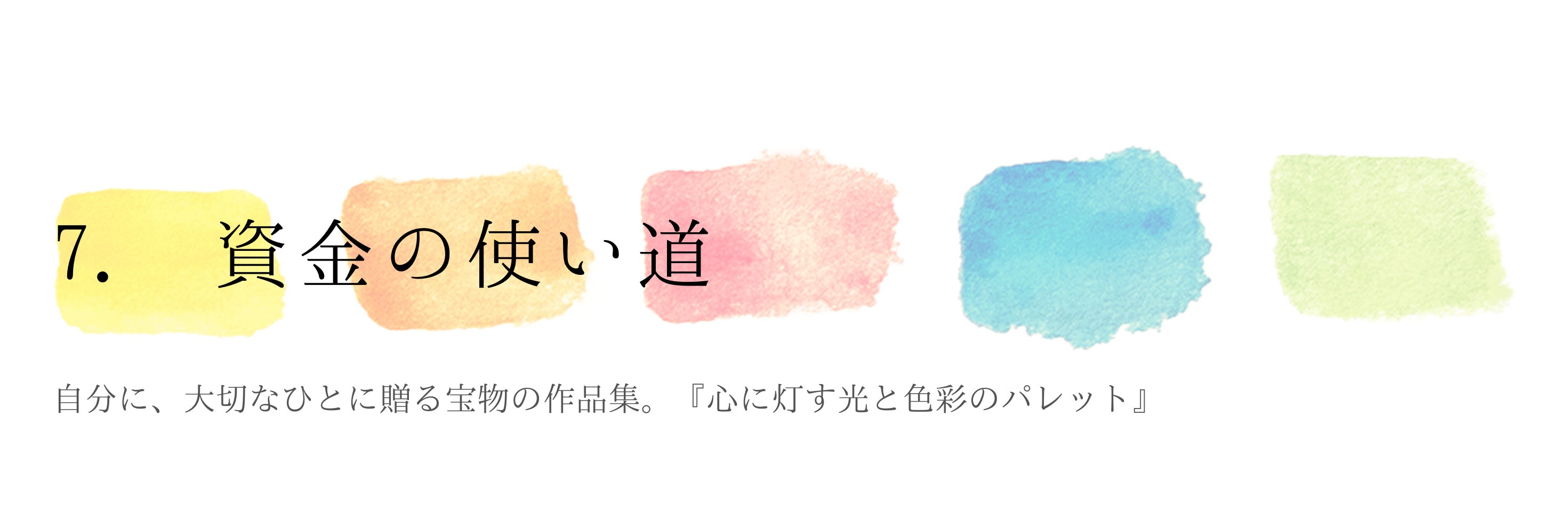①CAMPFIREの「自分に、大切なひとに贈る宝物の作品集。『心に灯す光と色彩のパレット』」のプロジェクトページへ