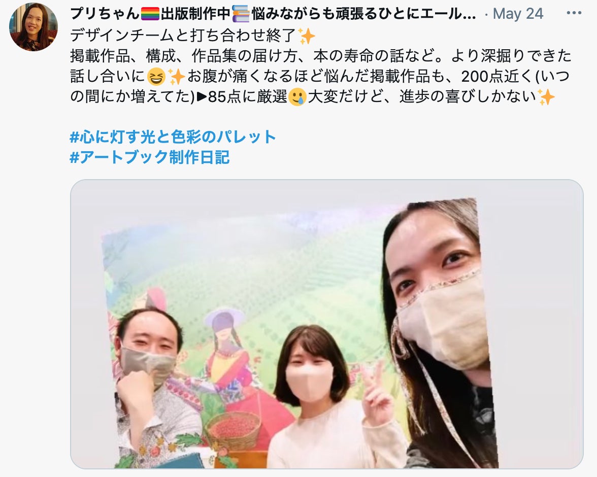 クラファン達成前は「実現か、否か」で随分ヒヤッとしたものですが、みなさんの応援のお陰様で達成してからは、「私たちのプロジェクトが実現してるんだ。。!縁する人が癒される一冊を、一日でも早くお届けできるようにしたい。。!」という常にワクワクした気持ちで取り組ませて頂いています。。!