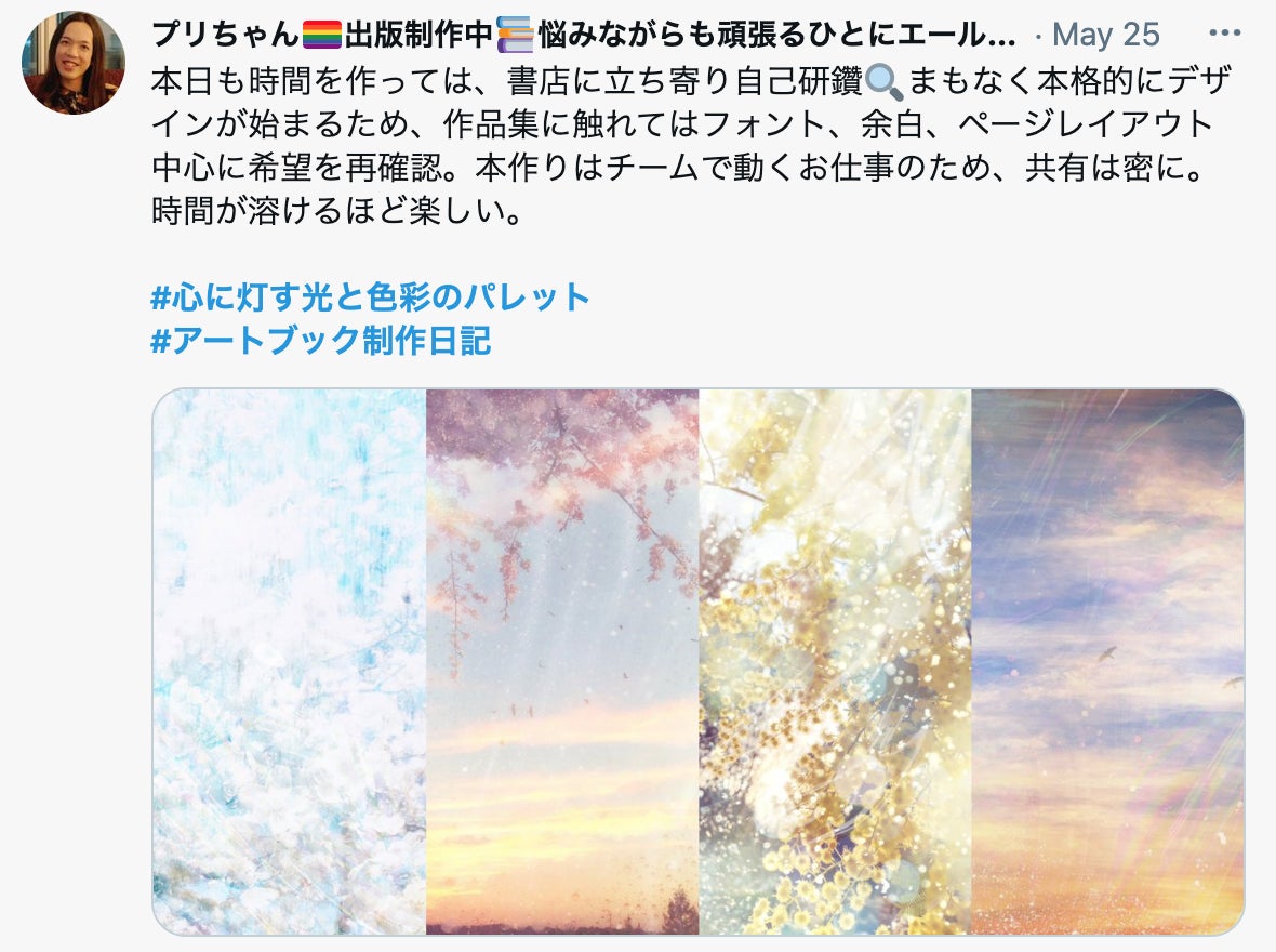 これまではアートブックの全体像が決まっていたのですが、今はより詳細を一つずつ決めている最中です。Twitterやインスタストーリーには、#アートブック制作日記 というタグで度々更新はしているのですが、こちらでも進捗を綴ったツイートを改めて並べておきますね。