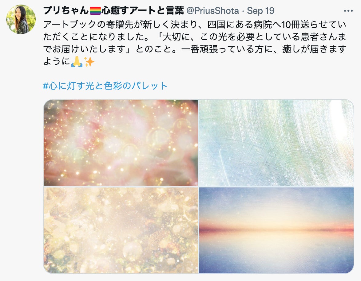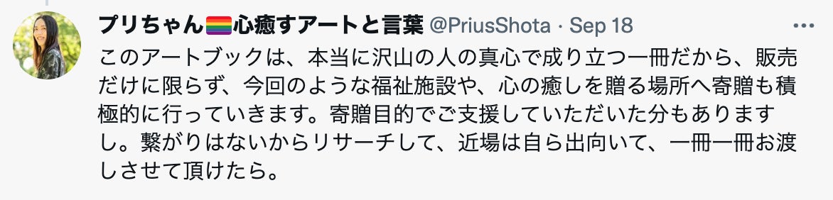 また、アートブックはクラファンのリターン分は発送終了だけれども、福祉施設や病院といった「心の癒しを届けられている場所」への寄贈や、書店での販売という販路を増やしていくという
