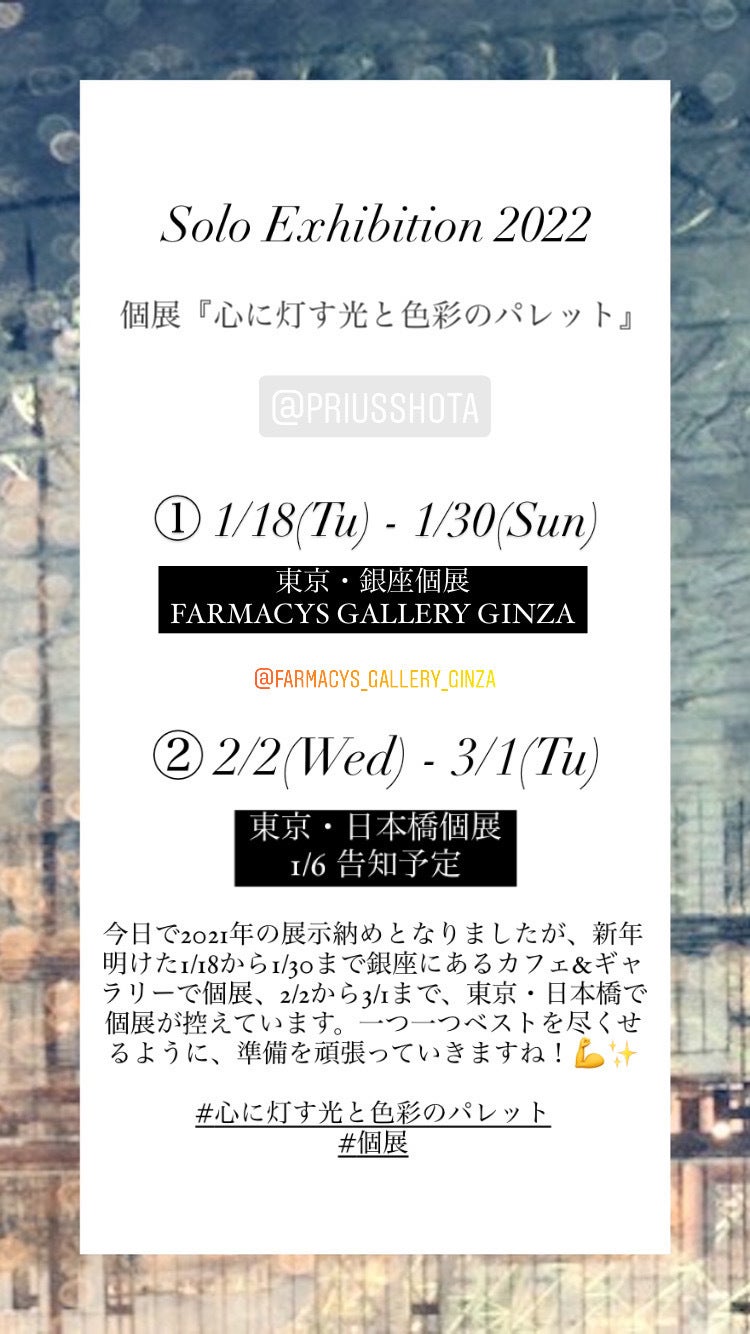 有難いことに来月1/18~30は、東京・銀座にあるFARMACY GALLERY GINZAにて個展、