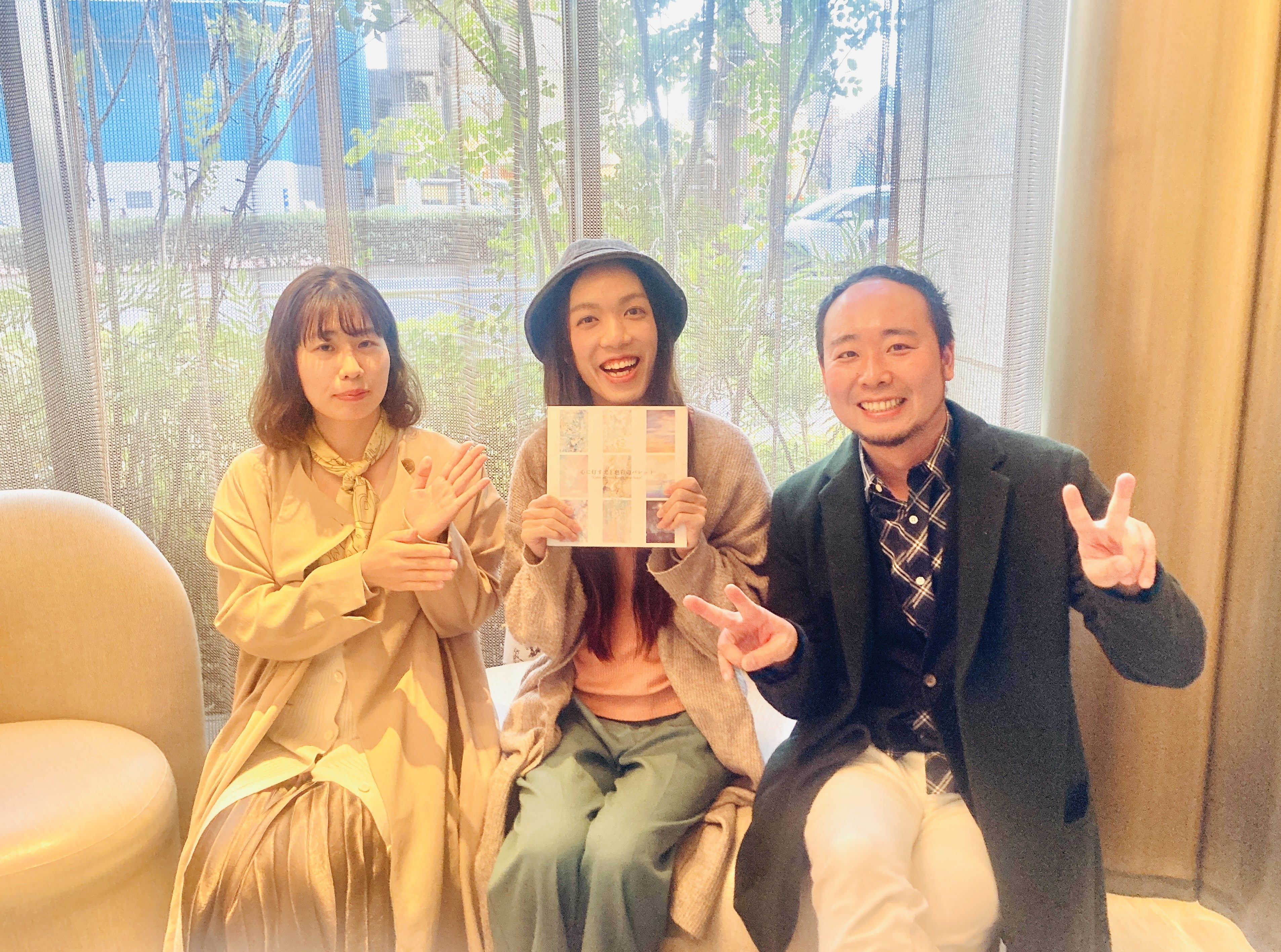 私と一緒に写ってくださっているのは、2021年に出版させていただいた、最初のアートブック『心に灯す光と色彩のパレット』、そのブックデザイン&印刷ディレクションに携わっていただいた中村さん(右)と帆志さん(左)。この2人がいなければ今のアートブックはなかった、最強デザインチーム。