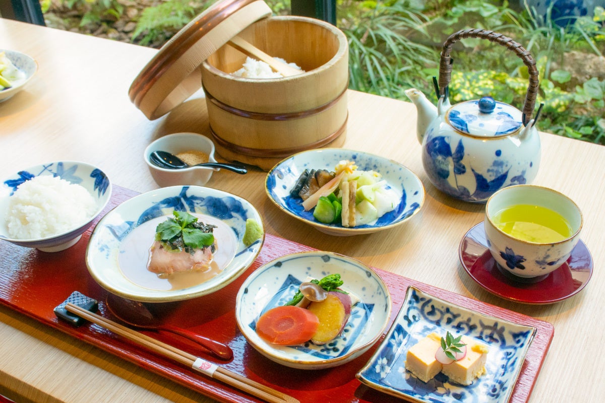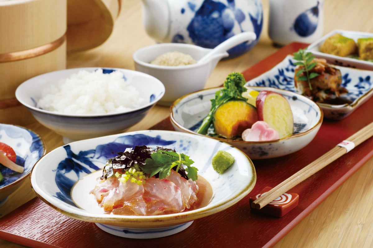 有田焼の器や朱塗りのお盆など、お食事を楽しんでいただくために器にもこだわりました。