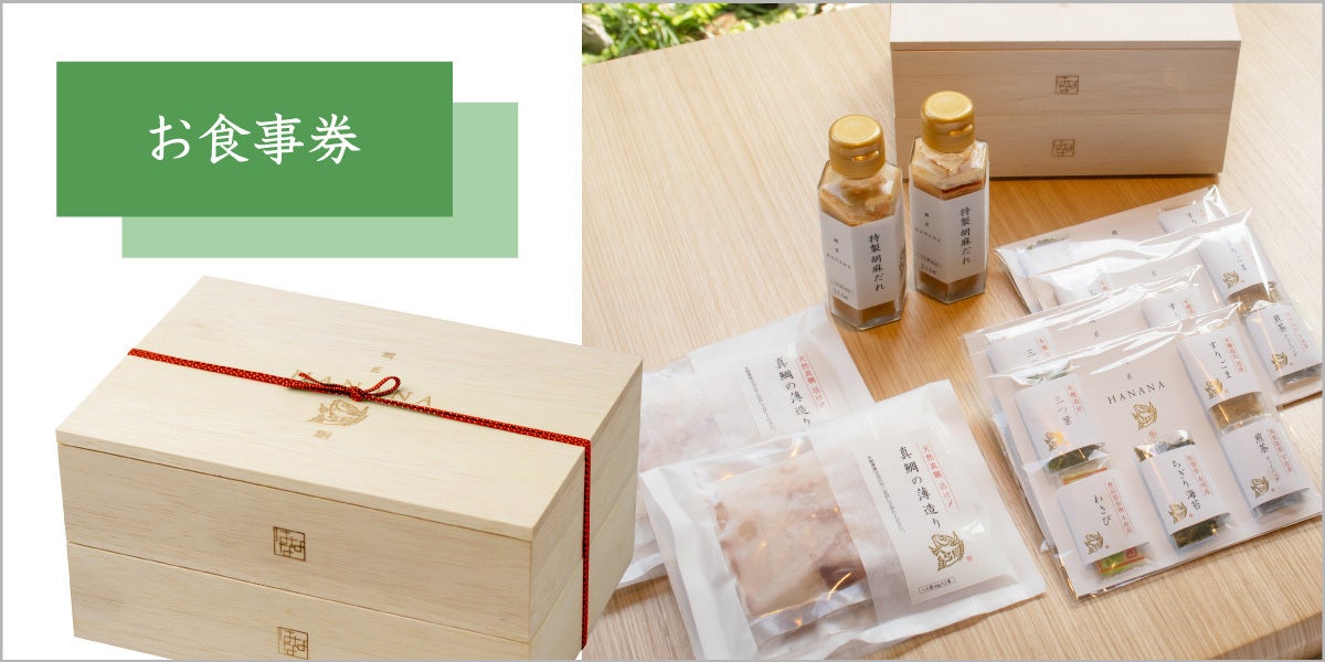 また、今回はコロナの早期終息を祈願して、鯛匠HANANAの鯛茶漬け御膳「お食事券」も付けさせていただきます。