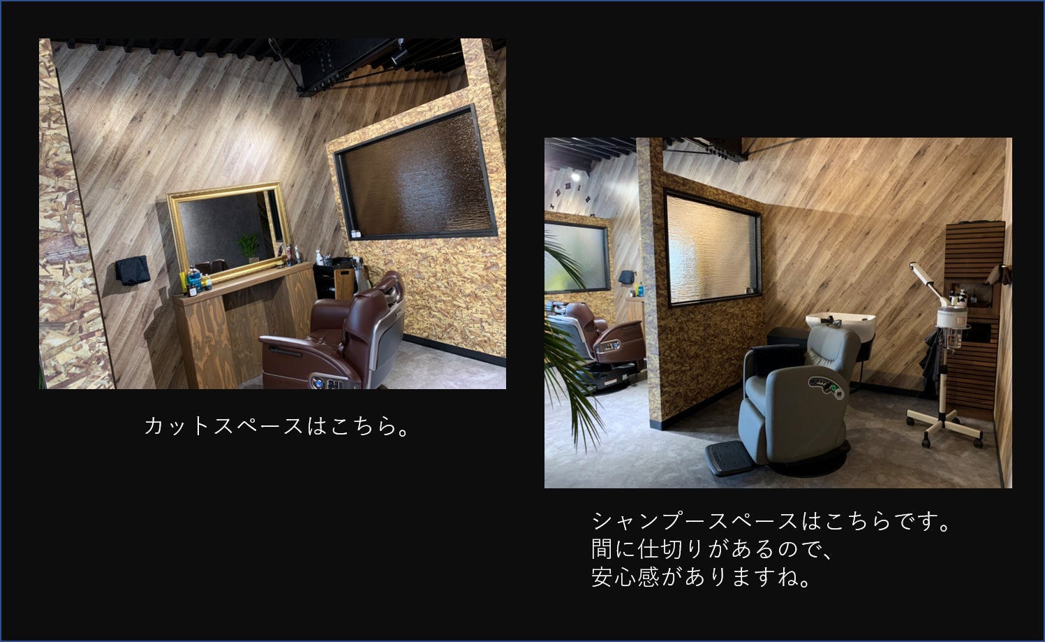 しっかりとした間仕切りや女性専用スペースを設けているので、男性と女性のお客様が一緒のお時間でも、お互い気にする必要はありません。髪を切るときはもちろん、ちょっと癒されたい、リラックスしたいという時にこそ、いらしていただけるお店でありたいと思っています。