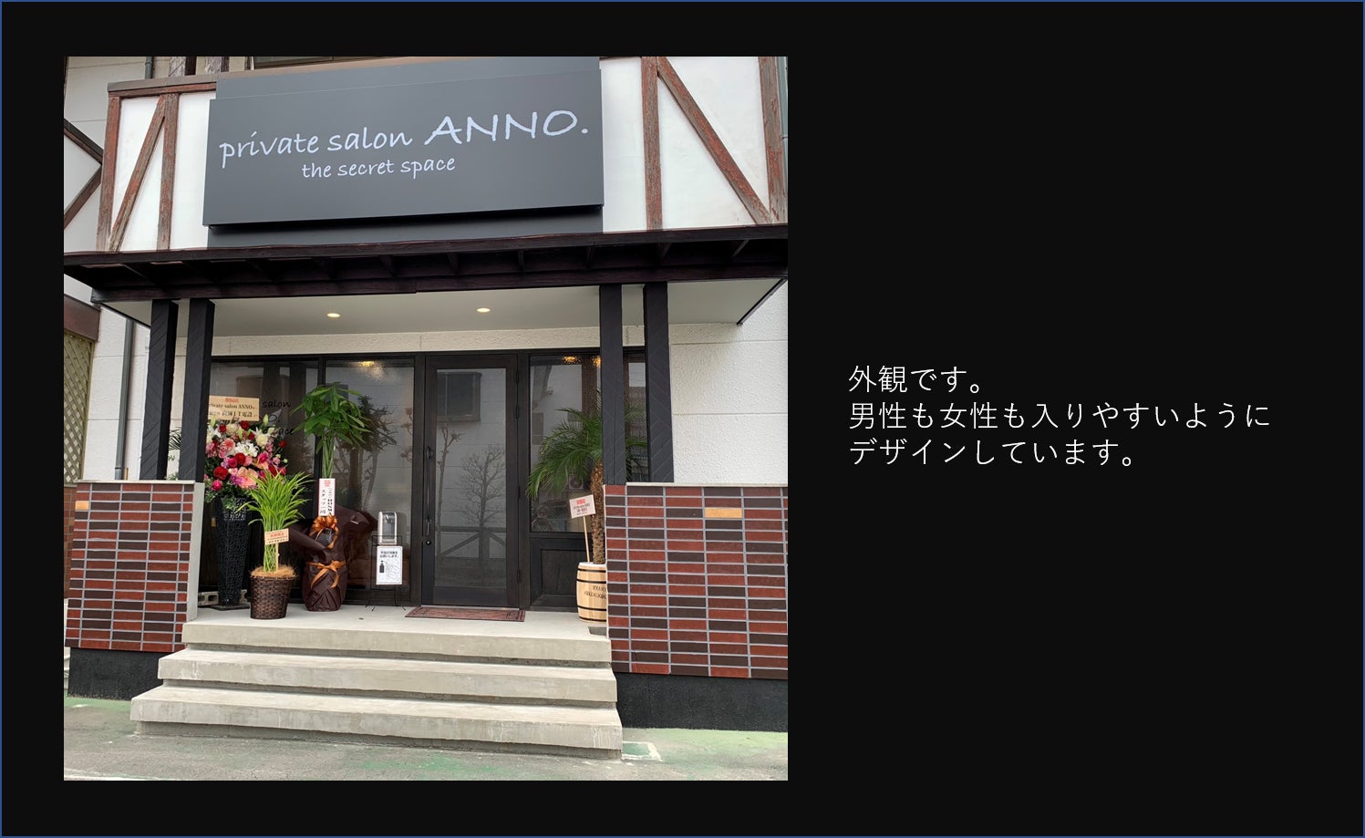 そして仕事でもプライベートでもセンスアップしたい方、ぜひprivate salon ANNO. にいらしてください。かっこよく、きれいは当たり前に。private salon ANNO. で日々の疲れを癒してリフレッシュしていただけたら、何より嬉しいです。ご来店、心よりお待ちしています。