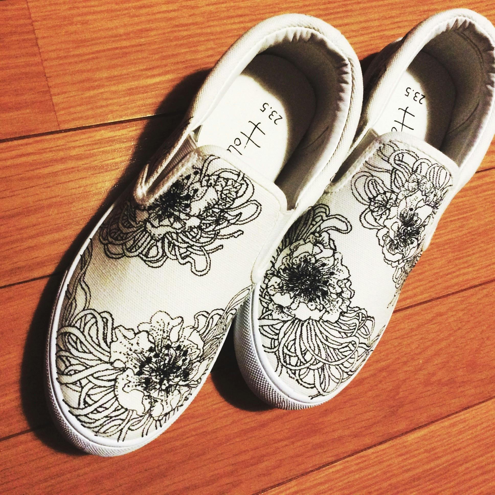 本日は「しなーと」の生みの親、橋爪かおりさんの手描きシューズをご紹介します。