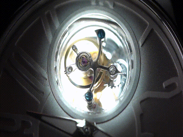 トゥールビヨンの駆動部分は表面・裏面でも確認できます。見ているだけで幸せな気分に浸ることができます。