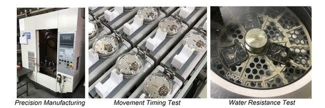 最終的な品質チェックとしてエンジニアが全ての時計を厳格に検査します。防水性、めっきの状態確認、ムーブメントの誤差試験、製品出荷前運転試験など時計が正常に機能することを保証するために徹底的に検査します。
