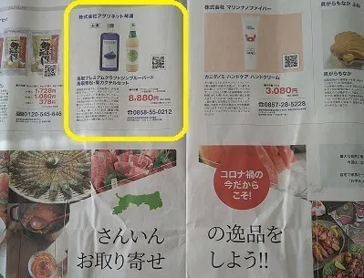 先日、大阪日日新聞の【さんいんの逸品をお取り寄せしよう】企画に、クラフトジン「BLUE BIRD」鳥取青松(ALC40%)と贅沢二十世紀梨ジュース(ストレート果汁)のカクテルセットを掲載し、関西方面の方へPRすることができました。この新聞は、地元の日本海新聞の関連があり、同企画で山陰地区の日本海新聞にも掲載されて、PRすることができました。
