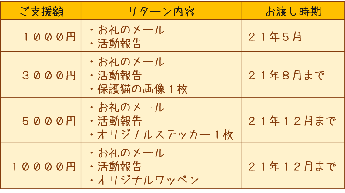 リターンは、ご支援金額に応じて4つを用意させていただきました。