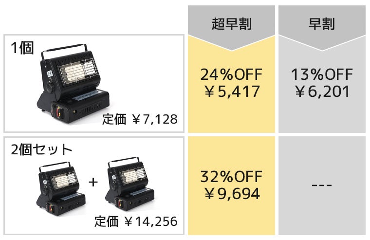 2021/06/15 13:02ご支援者のみなさまページをご覧のみなさまこの度は弊社のプロジェクトにご支援いただきまして誠にありがとうございます。おかげ様でご支援金額が70万円を達成いたしました。ご支援・応援コメント、本当にありがとうございます!プロジェクトもついに本日が最終日となりました。ご支援を検討中の方はお急ぎくださいね!カセットガスで使えるアウトドアヒーターは、災害時などにも役立ちます。1本で2~3時間使えるので、寒いときに少し暖を取るのにピッタリです!それでは残りわずかになりましたが、最後までよろしくお願い致します。 もっと見る