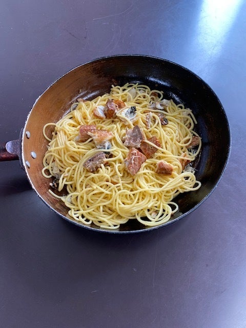 2021/06/16 18:00材料:パスタ、サバ燻製パストラミ(粗ほぐしに)、オリーブオイル、ニンニク、鷹の爪 塩・こしょう ※トマトソースでもOK! ご支援頂きました皆様、心より感謝申し上げます。 「すんごいサバの燻製」、プロジェクト終了次第お届けいたします。 もっと見る