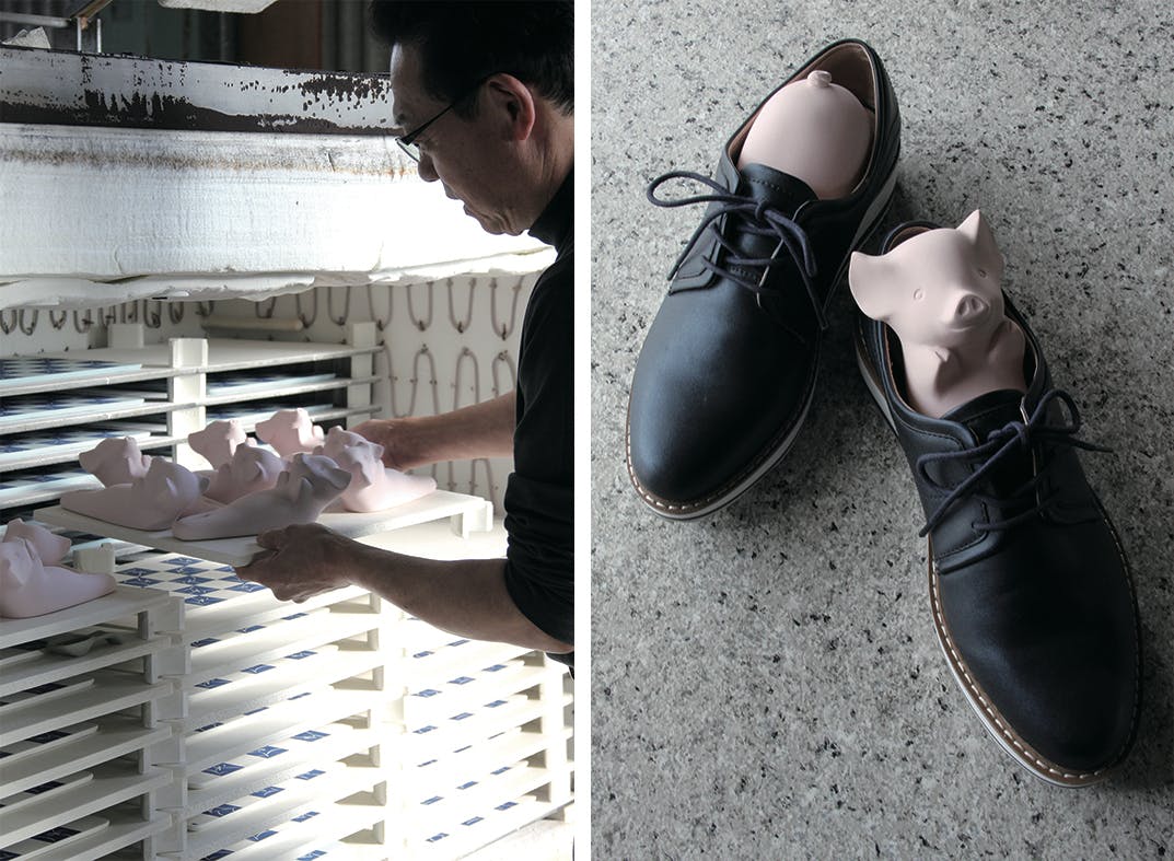 今回ご紹介する製品はくつ乾かすシリーズです。丸健製陶オリジナルの土「スウセラ」を使用して製造しており、新しい美濃焼としてシリーズ展開しています。