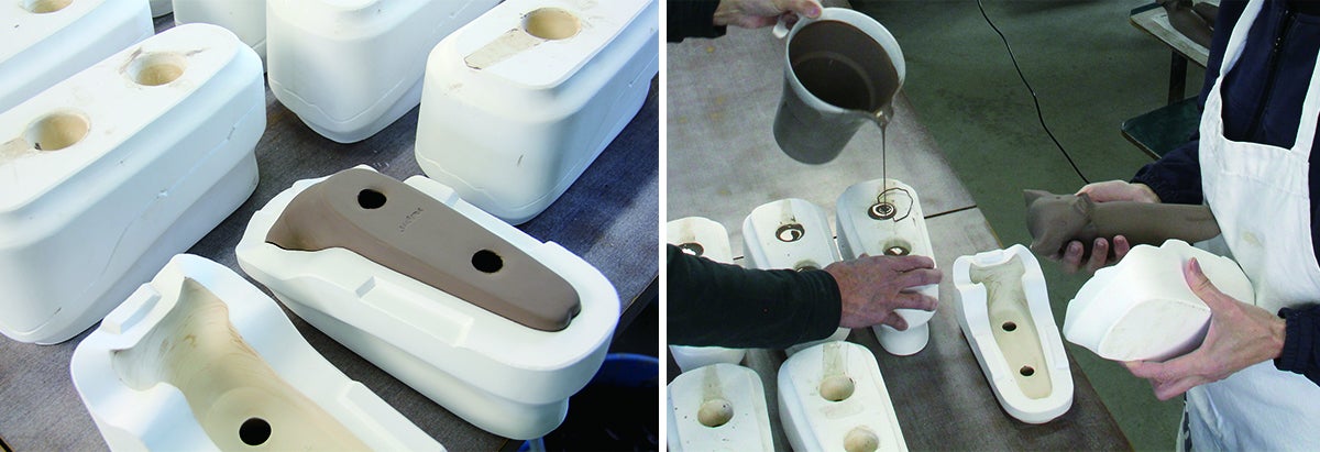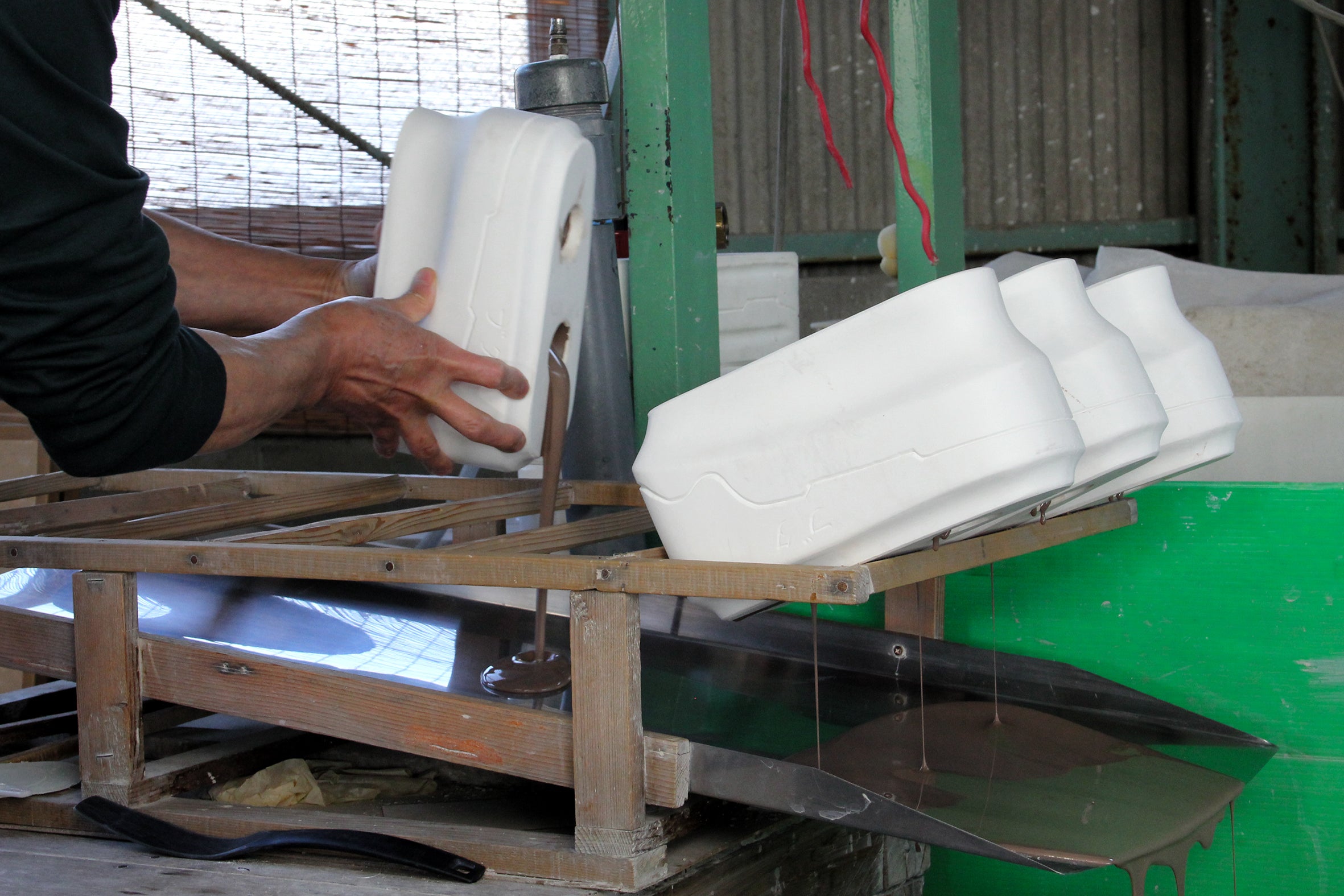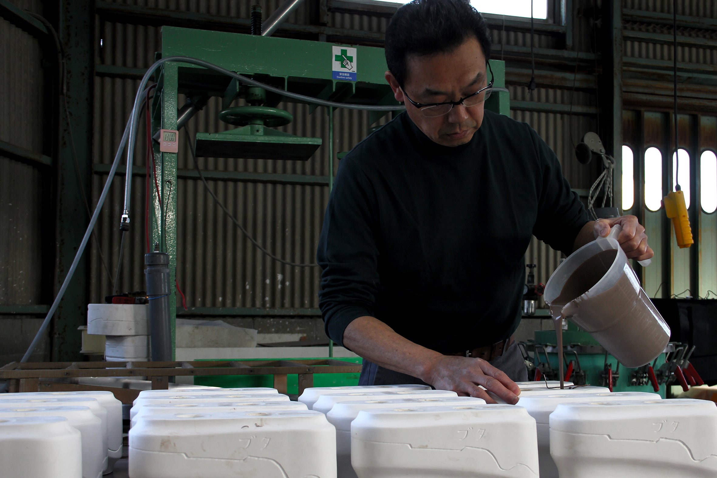 丸健製陶では型を使用した鋳込みという成形方法で生産しています。