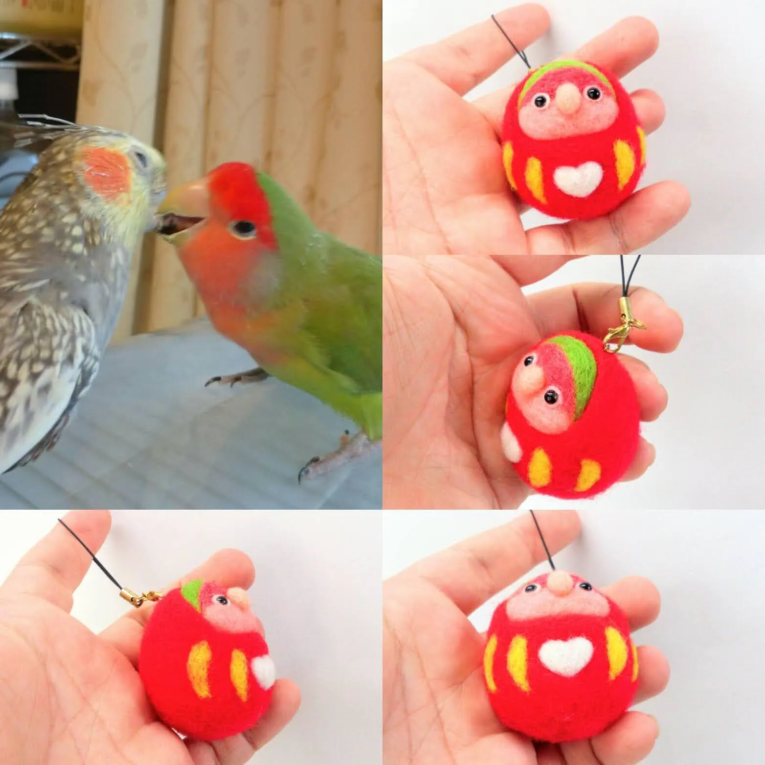 最近ペットを亡くしてペットロスが辛いと言う方へのボランティア制作で、今回はこのコザクラインコのお守りストラップをオーダーメイドしました。