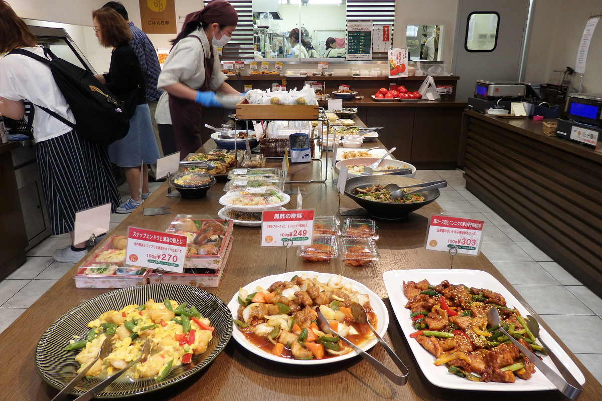 新型コロナウイルスが流行する以前は、写真のようにお好きな惣菜をお好きなだけ取り分ける事ができるスタイルで、お客様にご愛顧頂いておりました。