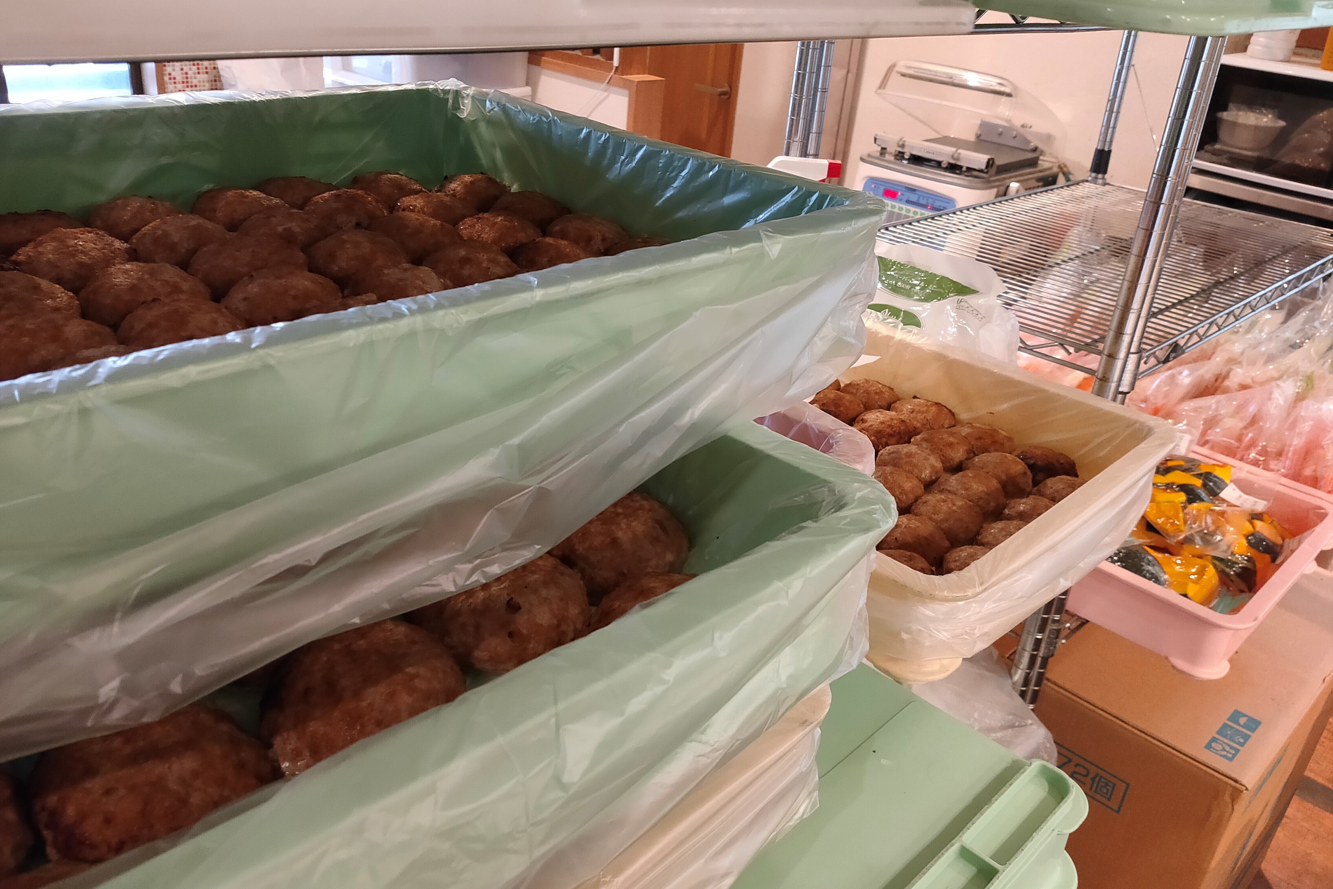 店舗では朝から一つ一つ手作りするため、タレの作成や野菜のカットなど、当日の作業を効率よくできるように下準備は物流センターで仕込んでいます。