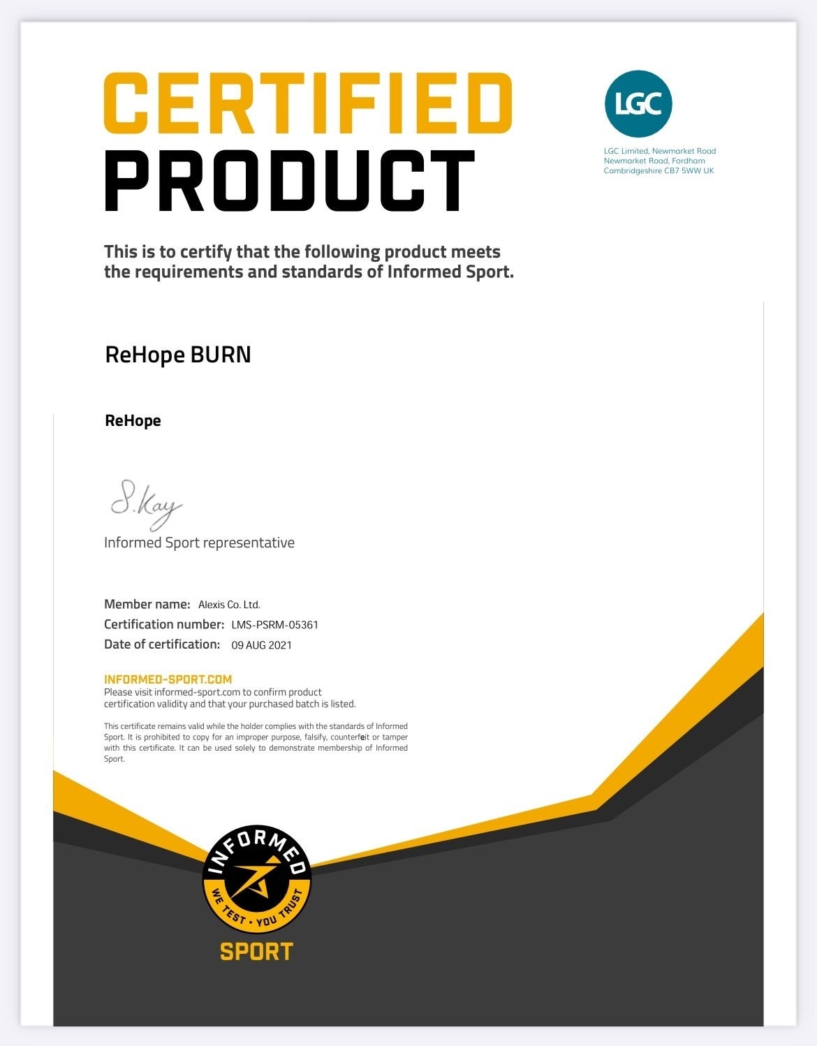 トップアスリートの方やジムでトレーニングを行なっている方は、ご自身のトレーナーにReHopeの成分表をぜひ見せてください。ReHopeが科学に基づいたデータとアスリートの経験から生まれた優れた処方であることをご理解いただけると思います。