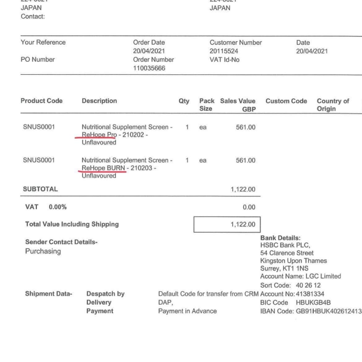アンチドーピング検査機関への送金が完了!これから検査がされます。このサプリメントを作るにあたって僕が絶対に譲れなかったものがアンチドーピング認証です。サプリメントは数え切れないくらいの種類があります。なかには安全性が不確かなものやドーピングの心配をしなくてはいけないモノもたくさんあります。現役のトップアスリートでも安心して飲める、そして皆さんが安全に飲めるものを作りたかったんです。それがRehopeです。