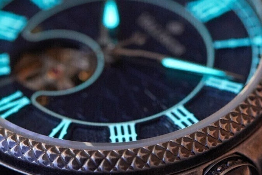 暗闇の中で輝く文字盤と針