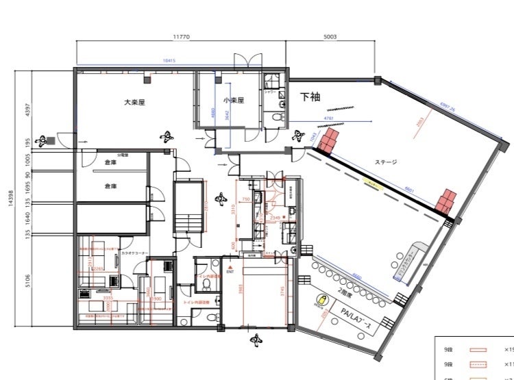 防音改装費・・・約450万円(天井解体、185㎡の防音工事、ステージ・2階席増設、電気・空調・楽屋トイレ増設・吸排気設備工事)