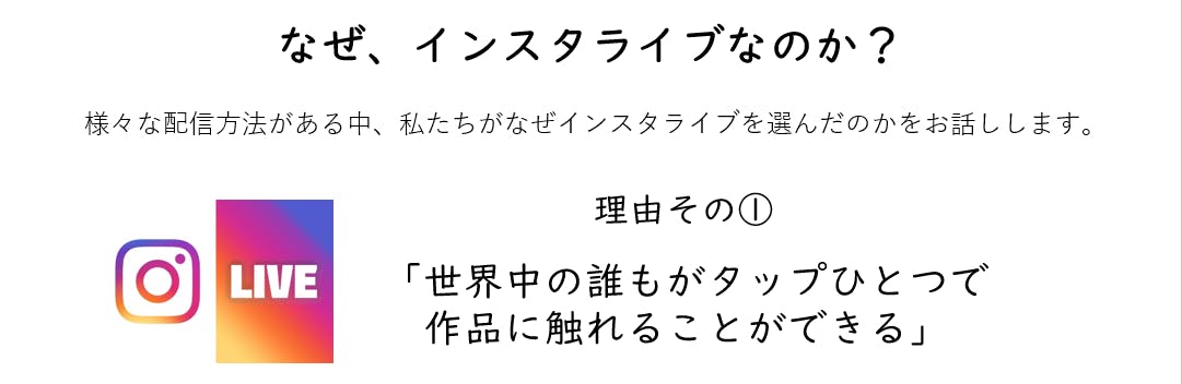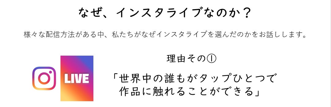 このある種の不自由さから、インスタライブは通常【作品を配信する】というよりも【なにげない日常を公開する】という使われ方をしてきました。