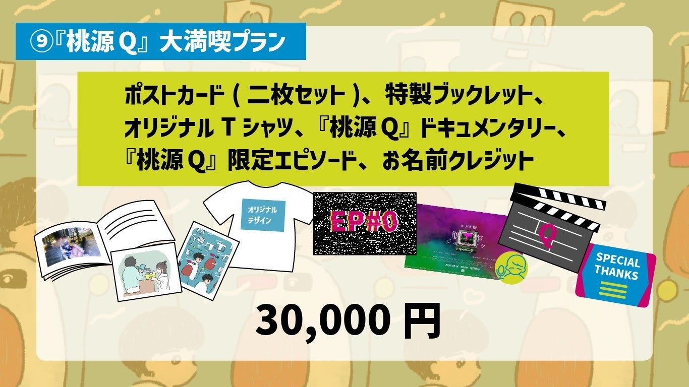 支援者様だけがご覧になることができる『桃源Q』のオリジナルドキュメンタリー映像をお届けします。撮影の裏側や密着映像によって、『桃源Q』構想段階から最終話までの挑戦の軌跡をご覧いただけます。