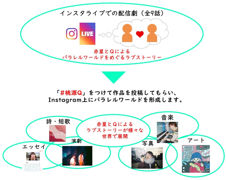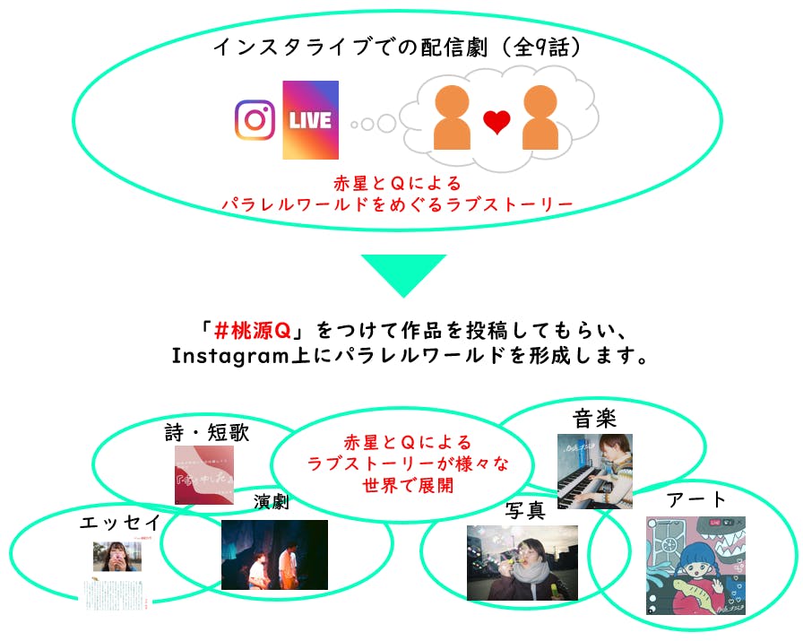 配信劇をみた視聴者やクリエイターの方々が『#桃源Q』をつけて自由に自らの作品を投稿することで、