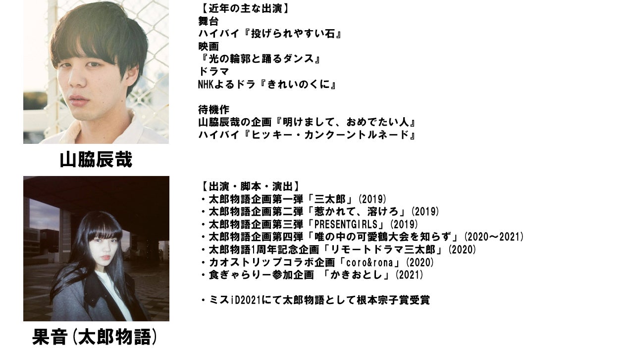 ・公序良俗に反するお名前と劇団で判断した場合、文字数があまりにも多すぎる場合はCAMPFIREのアカウント名、もしくはこちらで編集したお名前を記載させていただきます。