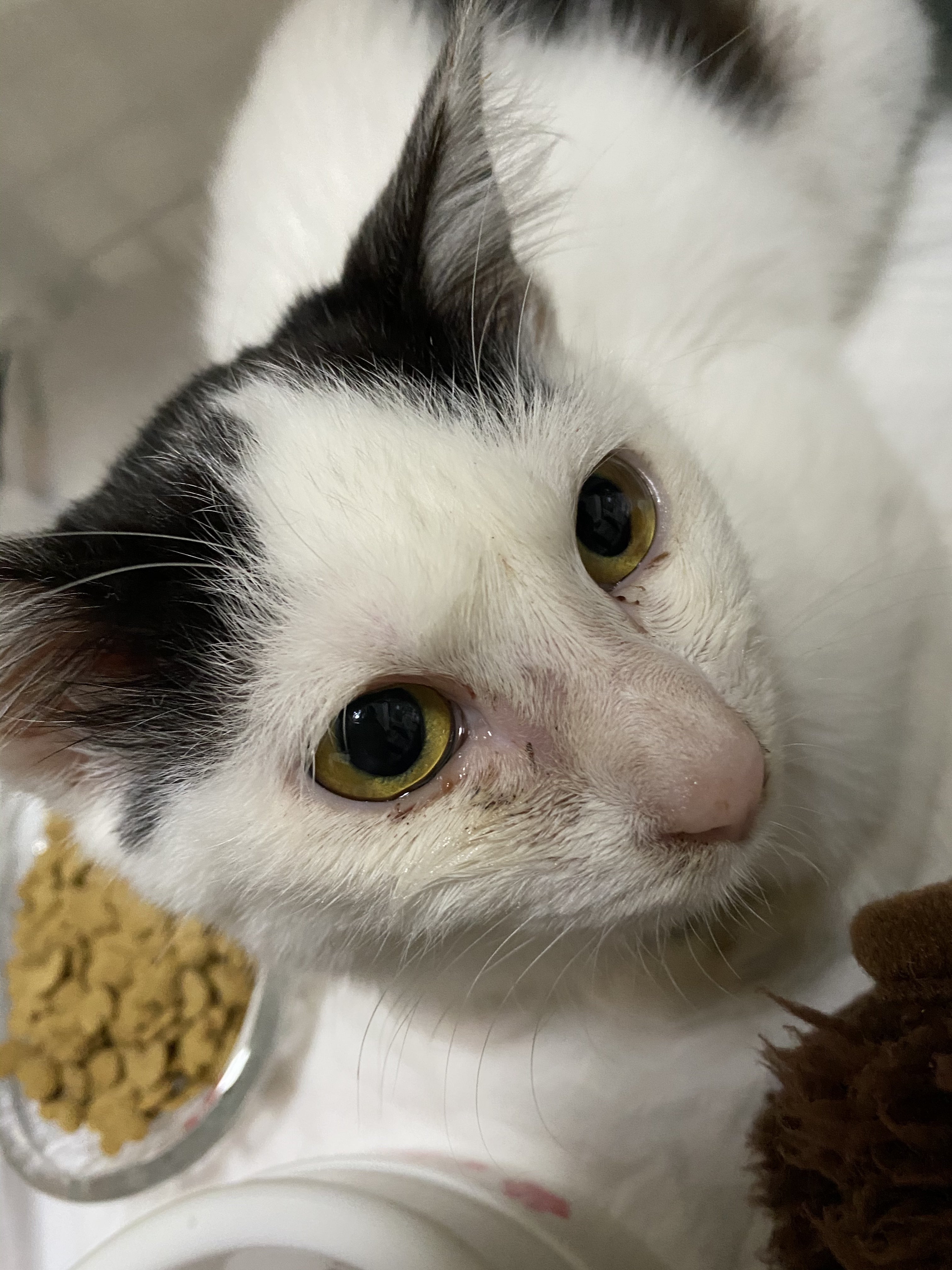 ・多頭飼育崩壊レスキュー…4/6にSOSがありレスキューに向かいました。4畳1間の家に5匹の猫。ふん尿とゴミ山の中で助けを求めるかの様に泣き叫んでいました。1週間以上飼い主さんは帰っておらず水も餌もありません。早急に保護し病院受診をしたところ、軽い脱水やカリシウイルス(猫風邪)、結膜炎にかかっており現在治療中です。