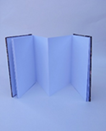 『四ツ目和綴じ』は、本の背の部分(ノド)が糸で綴じてあるため、『蛇腹製本』製法より見開きが大きく開きません。