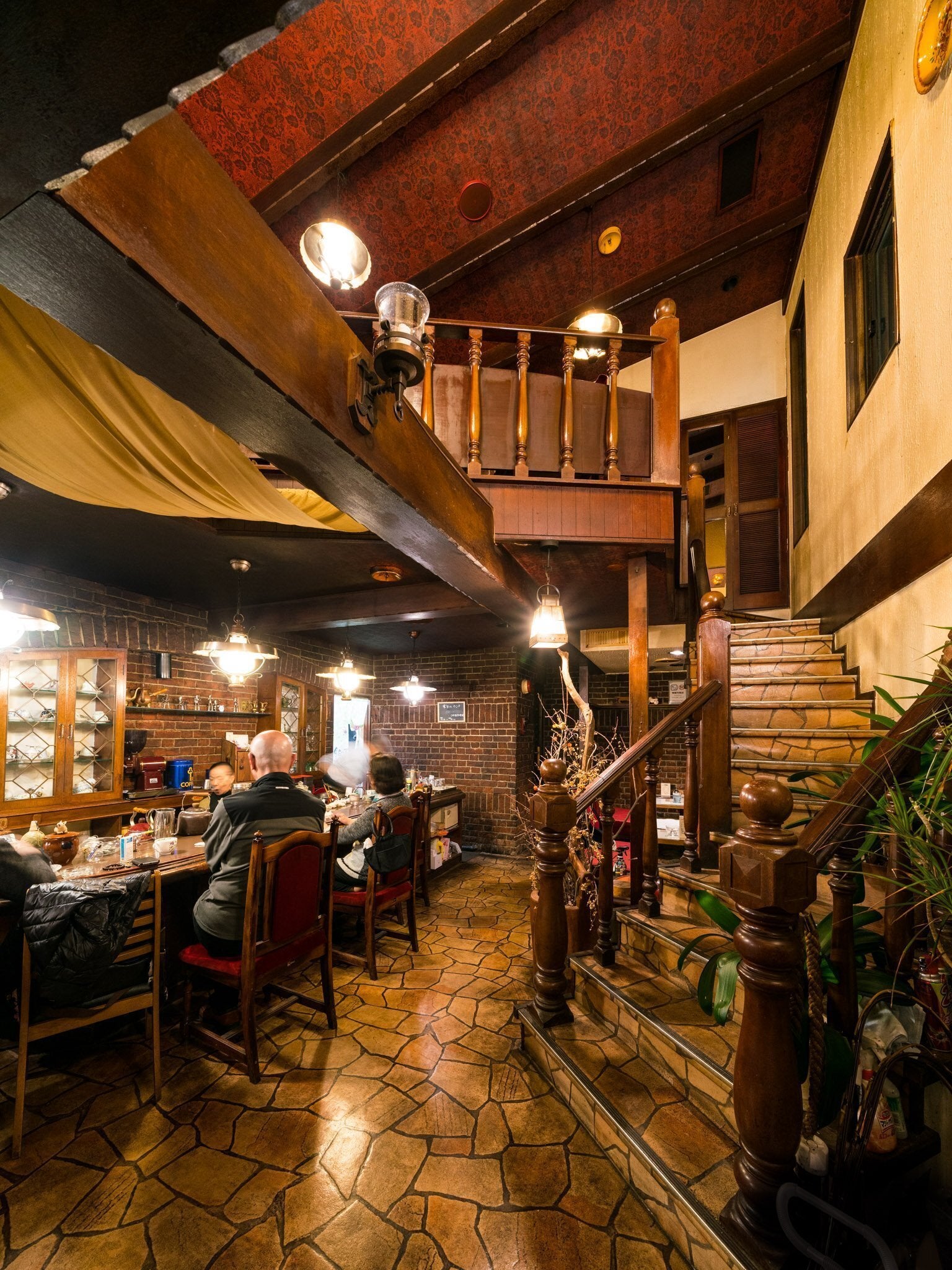 何回も店主が変わりましたが、シックな煉瓦の壁、2階の暖炉、つややかな木造階段、柔らかく灯るシャンデリアなど、建物や内装は建築当時からほとんど変わりません。