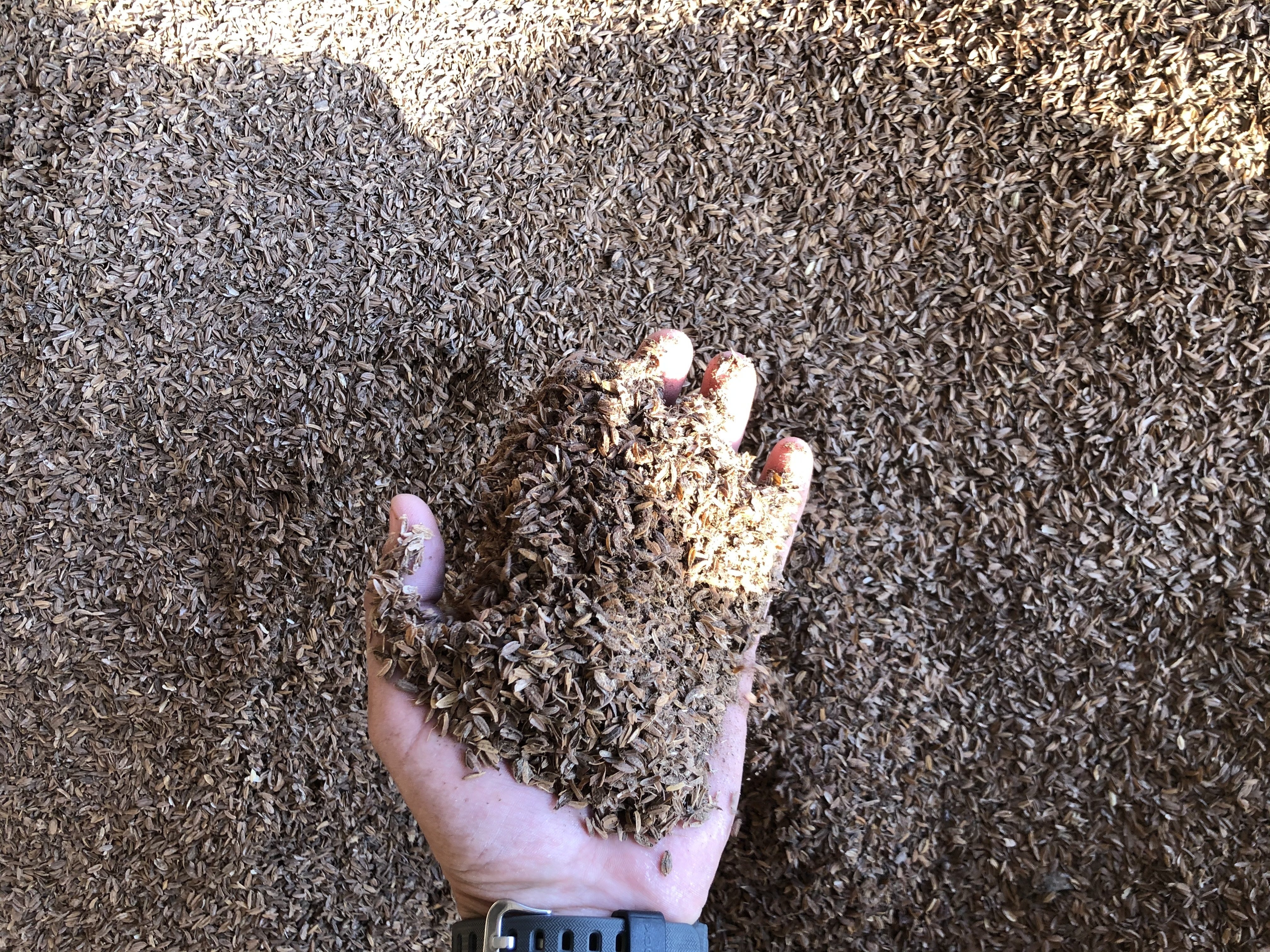 地元が酒米の産地なので、酒米から出てくる籾殻や米糠を使った有機物を発酵させ、土に還して元気な土作りを目指しています。