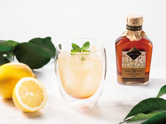 新ショウガの辛みと新鮮なレモンの酸味を引き出すため、隠し味にハーブとスパイスを入れました。シロップを割る炭酸は強炭酸が◎。