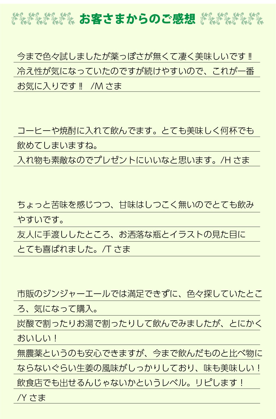 早速、常飲することで女性の冷え性が改善されたなどの感想をいただいております。