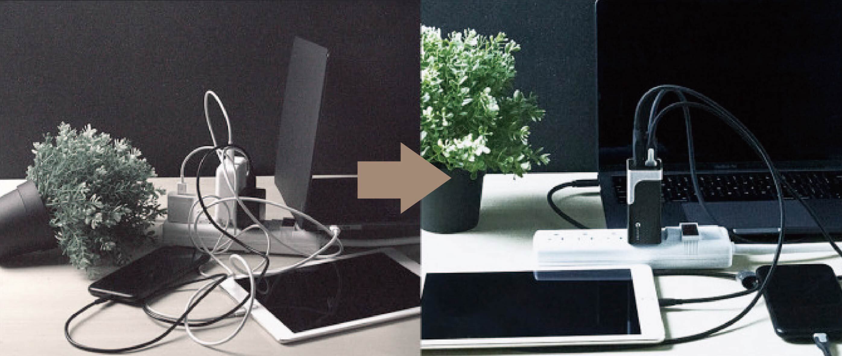 ⬛︎ いくつもの充電器から解放され、机の上もスッキリ!