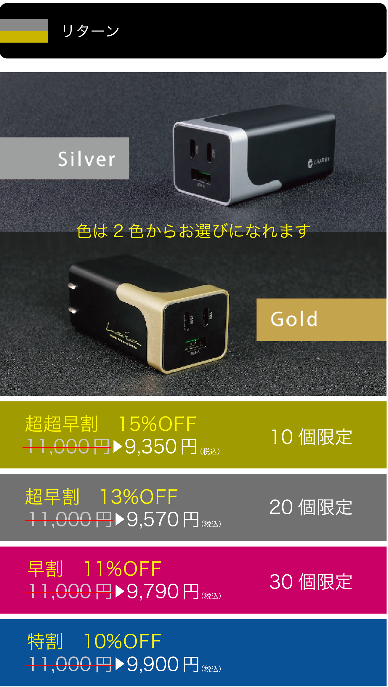 【Charby Pico】はパワー半導体素材GaNにより、電力損失と発熱量が小さいため充電速度が早いのも大きな特徴です。