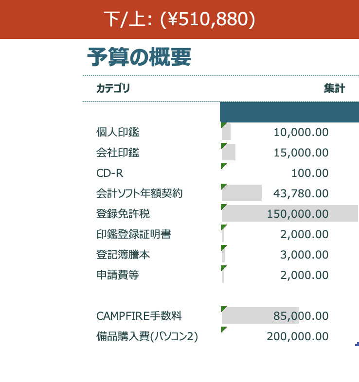 事業を始めさせて頂く上で基盤となる法人の登記費用や、それに伴う備品費でございます。