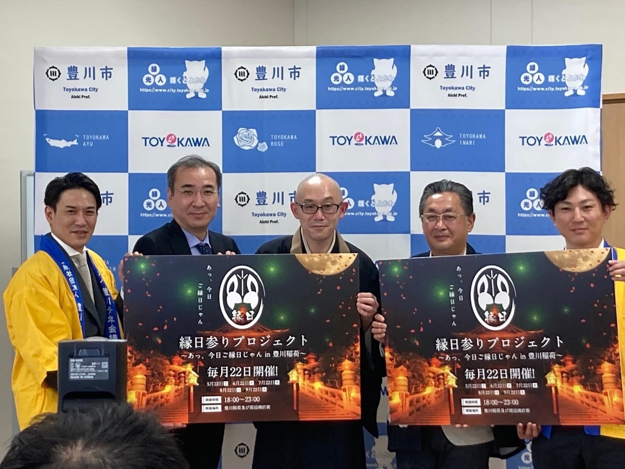 きっかけは豊川青年会議所の縁日参りプロジェクト〜あっ、今日ご縁日じゃん〜という企画。豊川稲荷の縁日に当たる毎月22日宵の刻に夜間参拝という新たな分散参拝の形を提案する豊川稲荷580年の歴史の中でも初の試み。