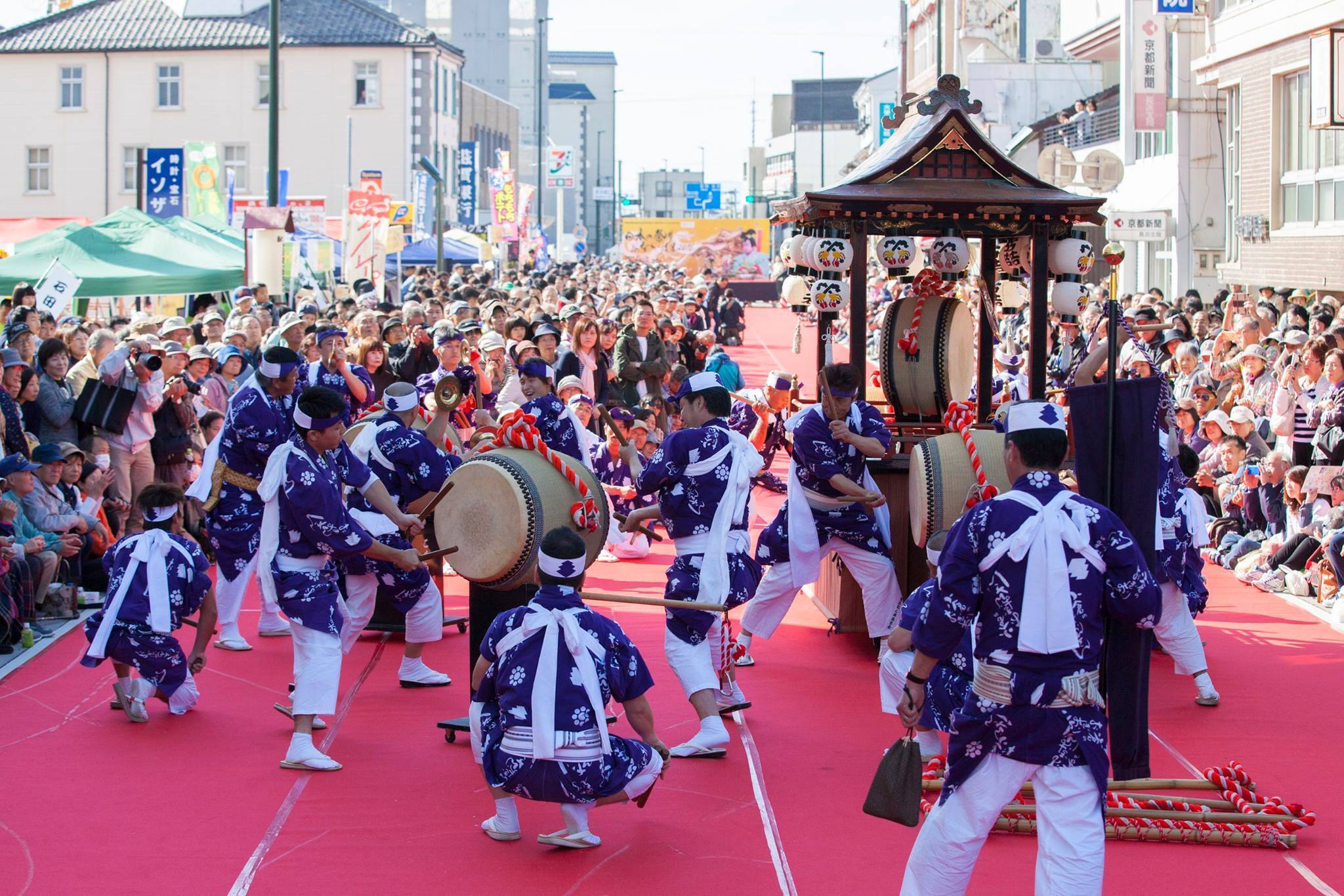 市民や観光客のかたが実際に太鼓を演奏できるように、祭り期間中の毎日、太鼓体験の時間を設け、楽しんでいただきました。