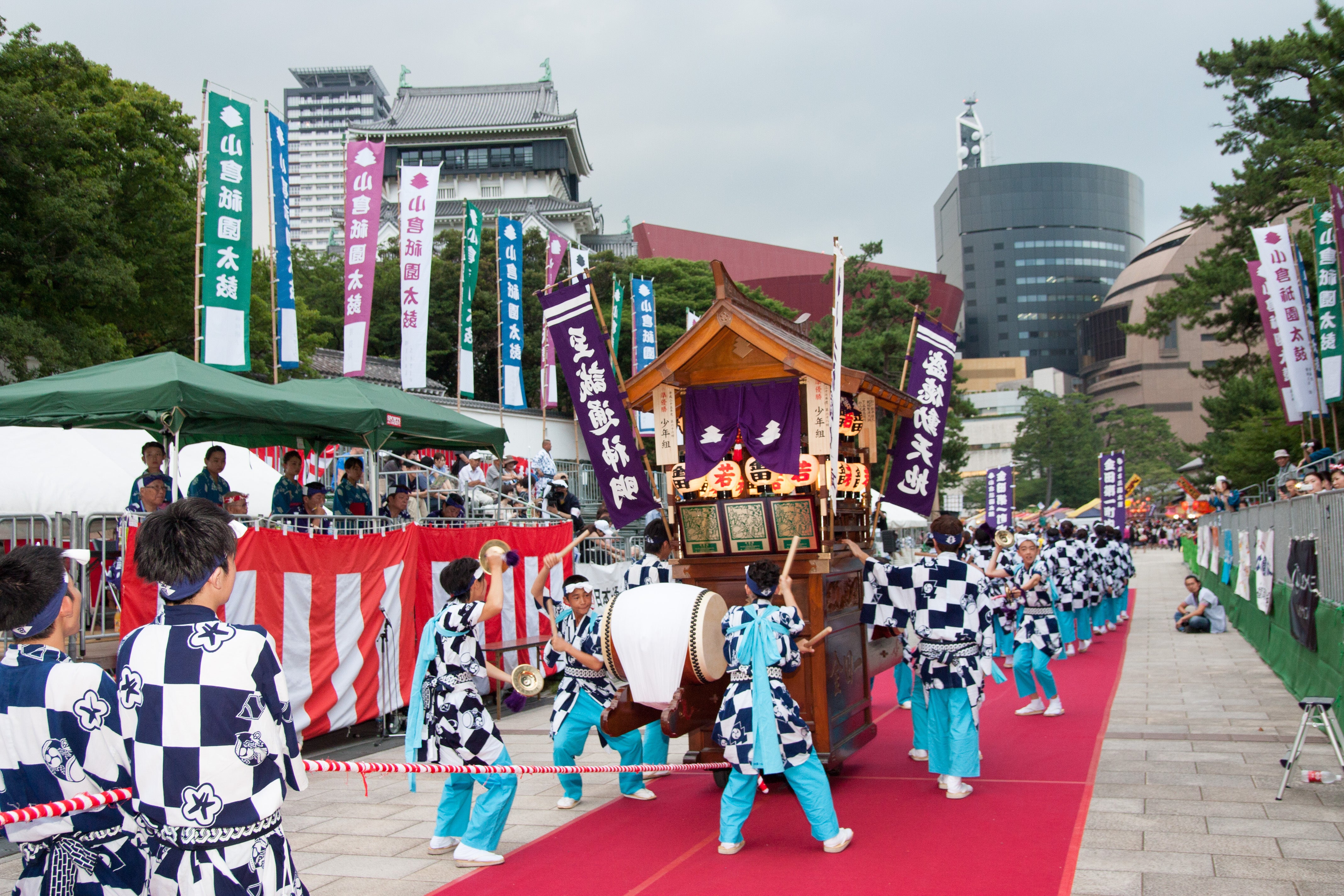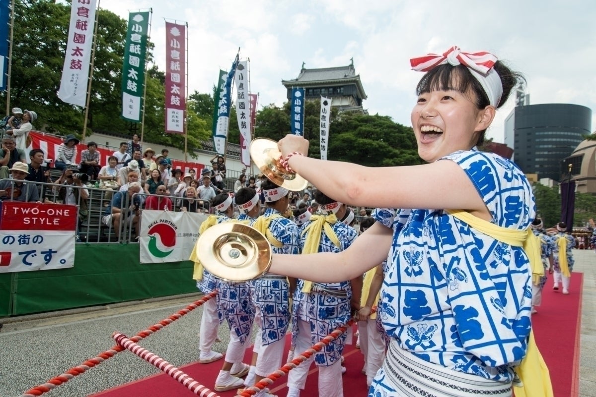 小倉祇園太鼓は、小倉城を築城した細川忠興公が無病息災を祈るとともに、城下町繁栄策のひとつとして、京都の祇園祭を小倉の地に取り入れたものが起源とされ、小倉のまちに夏の訪れを知らせる風物詩として古くから親しまれてきました。
