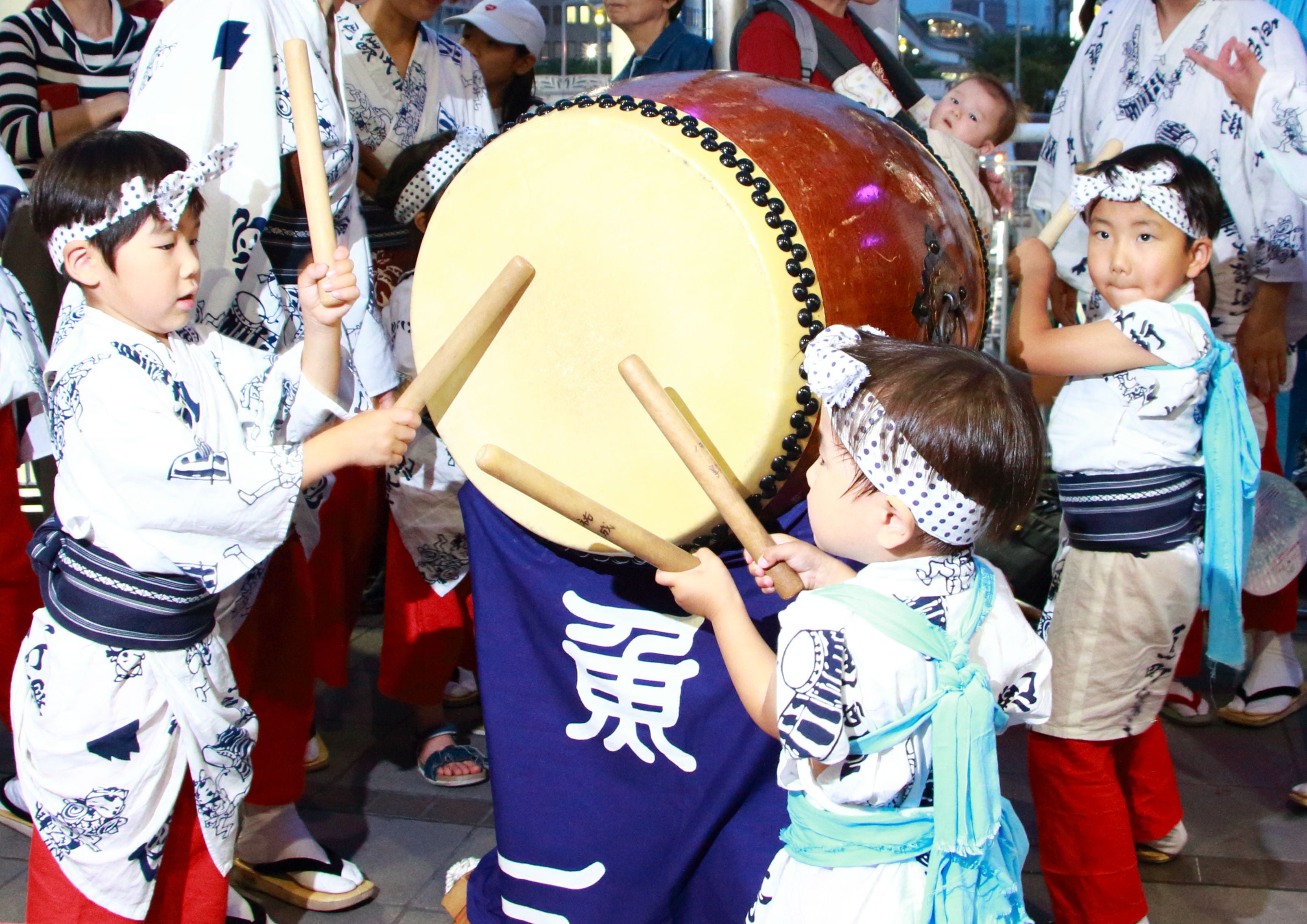市民や観光客のかたが実際に太鼓を演奏できるように、祭り期間中の毎日、太鼓体験の時間を設け、楽しんでいただきました。