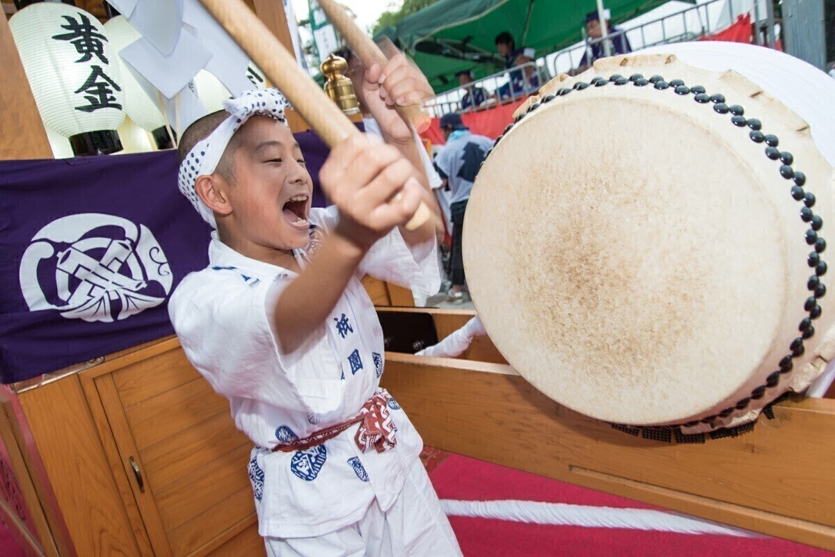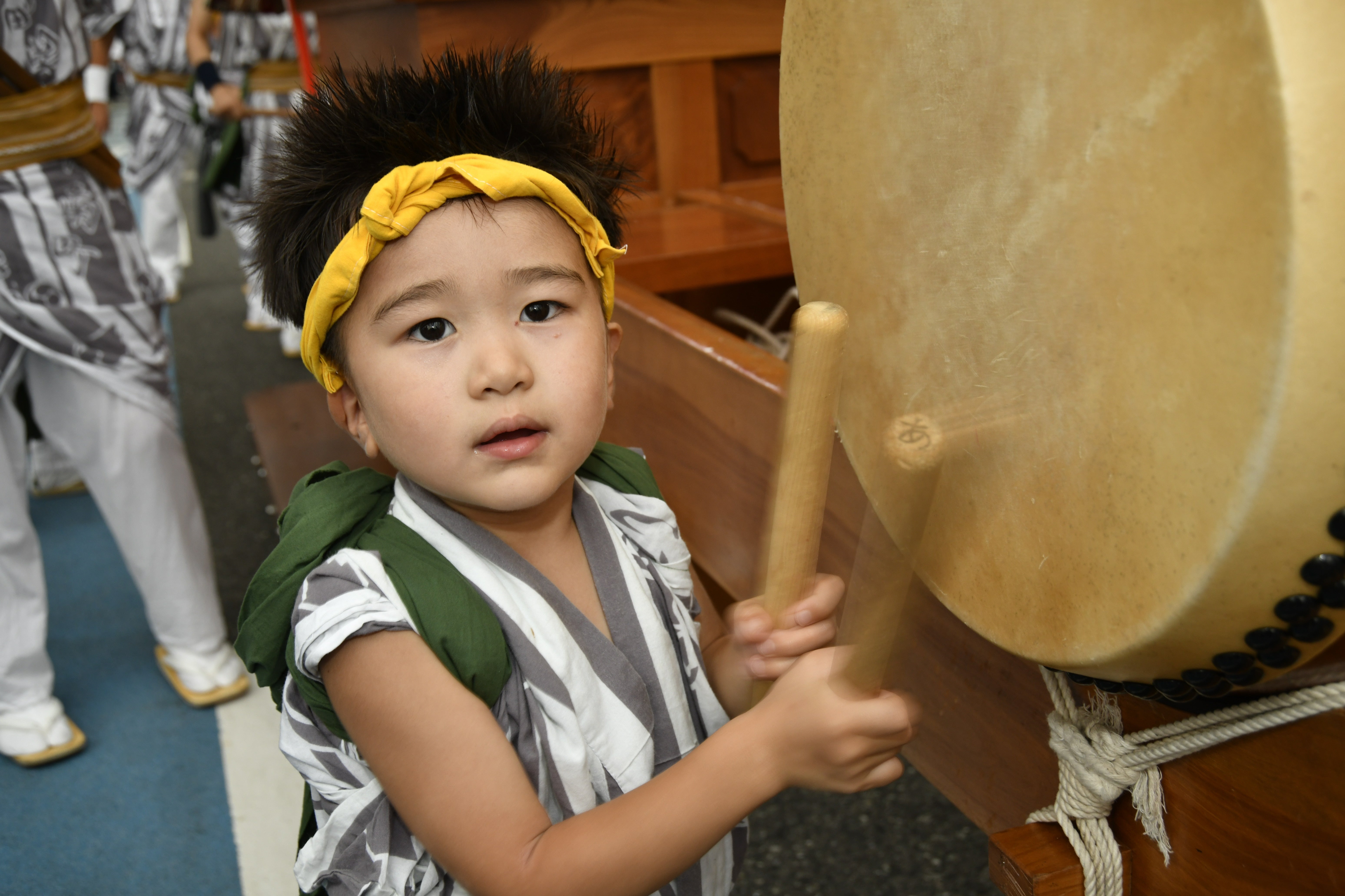 子どもたちの元気なお囃子も、祭り気分を盛り上げます。