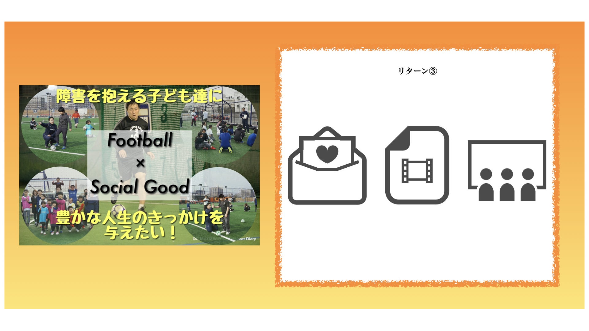 今回のプロジェクトはそんな当事者である私が発達障害を抱えている子どもや親御さんに対してフットボールを通じて人生を豊かにする。