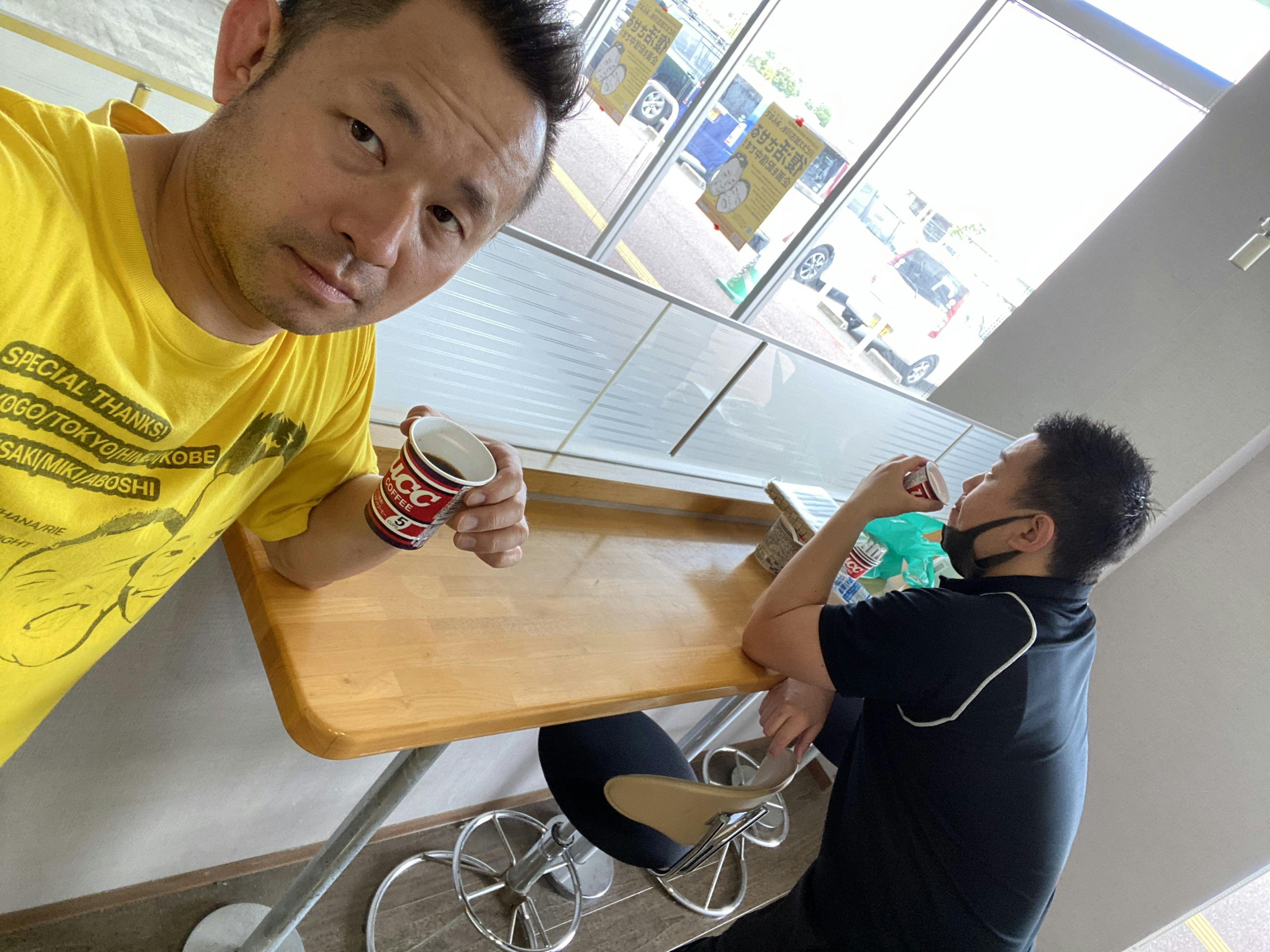 使用方法:いつもハピネス加古川の前に来てくれるボンジュールのメロンパンを買って、コーヒーを片手にドヤ顔で事務作業をしたり、色んな人と会話をしましょう。(4人で会話した写真撮り忘れた!)