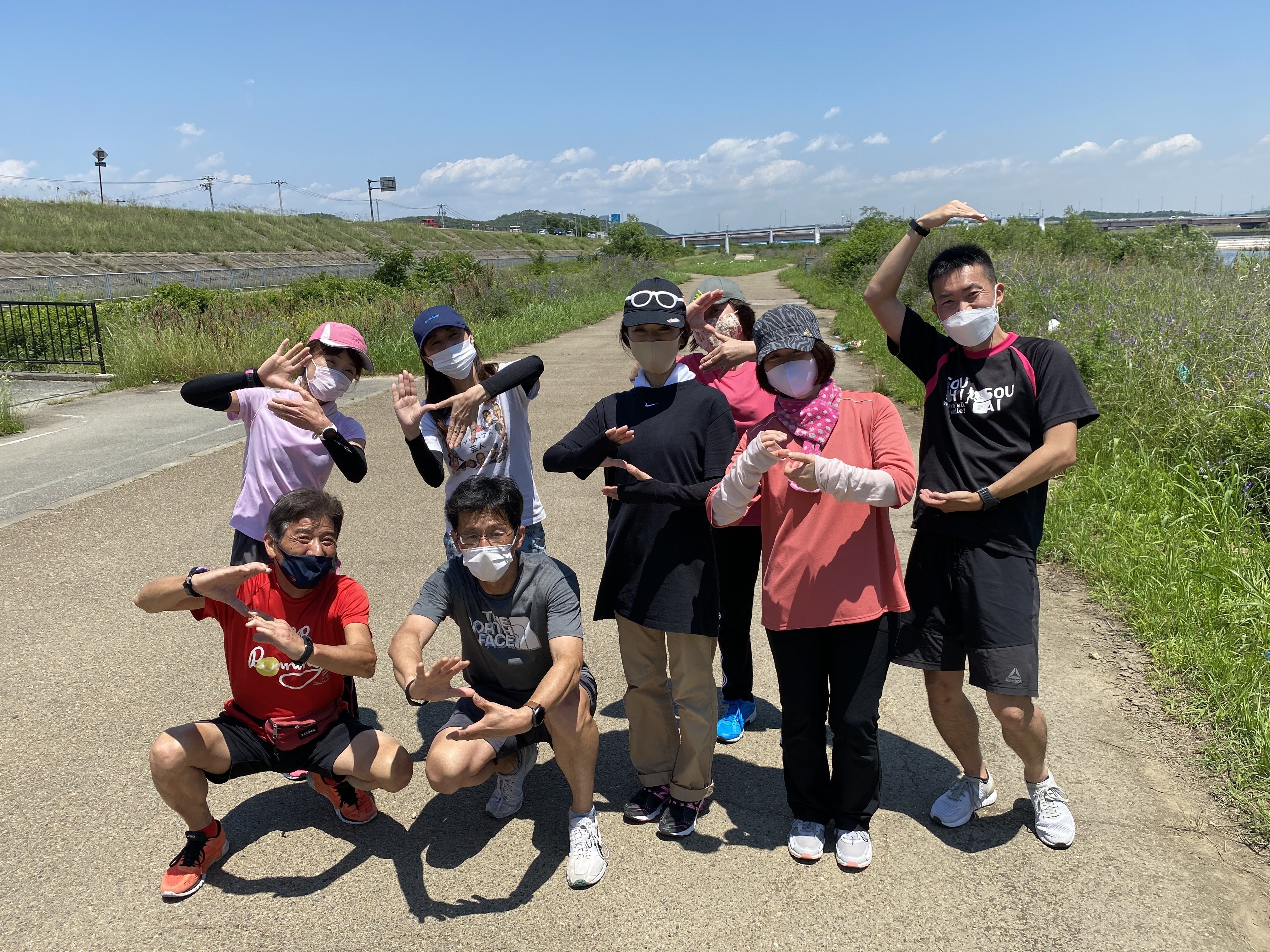 神戸のランニングマン、ノミーコーチの指導を受けながら楽しくウォーキングやランニングを楽しむ事が出来ました。ハピネス加古川はその名の通り加古川の河川敷が近くにあるんです!